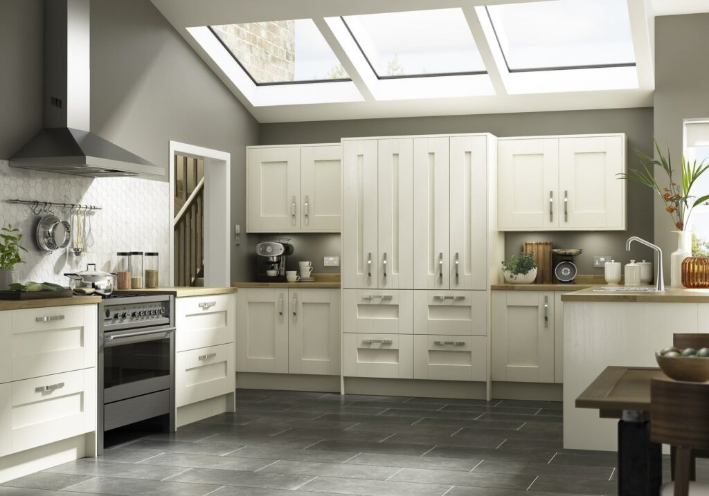 The appeal of the Shaker kitchen door is threefold; 1) The Shaker kitchen door is composed of a proportioned frame and inset panel, creating an entirely symmetrical look which is clean and pleasing to the eye. 2) Further aesthetic appeal lies in the door’s simplicity; Shaker doors are void of any frills or unnecessary adornment due to the Shakers’ belief in simple, clutter-free design. This means that anything not needed or without function isn’t present. The result of this is the understated beauty of the doors can shine, and put simply…they look great! 3) A clean and unfussy door fascia creates timeless appeal so your kitchen won’t look dated with age. This makes the Shaker door a popular option for someone planning on staying in their home long-term, but equally for those who aren’t as it should appeal as much to future potential buyers.